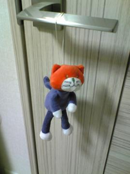 毎日ドアノブに居て見送ってくれます。